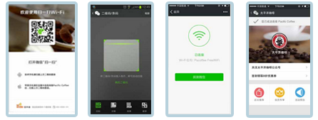 微信扫一扫可以帮助顾客在门店内方便的连接WiFi,同时为商家提供营销入口,与顾客直接互动顾客在门店内,就可以通过微信接收到门店